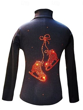 Giacca in pile per pattinaggio artistico Per donna Ragazze Pattinaggio sul ghiaccio Giacca Top Nero Patchwork Spandex Elasticizzato Allenamento Competizione Vestiti da pattinaggio sul ghiaccio Calore