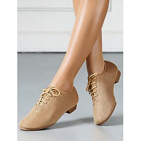 scarpe da ballo professionali da donna con lacci in rete color carne, scarpe da ballo da sala con tacco basso e traspiranti &scarpe da allenamento latino per l'allenamento in studio