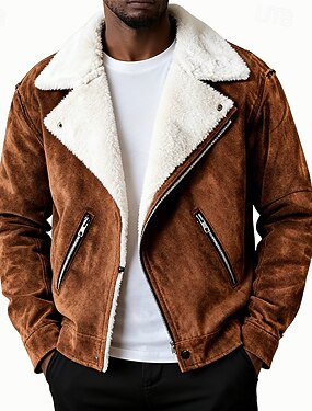 Per uomo Giacca in finta pelle scamosciata Giacca Invernale Giacca in Pile Giacca Sherpa Vacanza Quotidiano Calore Termico Tasca Pile Autunno Inverno Semplice Moda Streetwear Bavero Regolare Nero