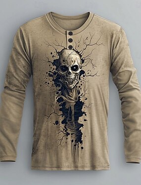 Per uomo Grafico Zombi Maglia Henley Manica Lunga Moda Carino Quotidiano Casuale Ferie Uscire Primavera Autunno Primavera & Autunno Cachi Henley Maglietta Henley