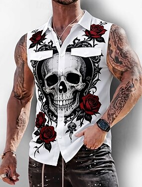 Per uomo Teschio Orrore gotico Rosa Camicia Camicia con Bottoni Maglietta senza maniche Senza Maniche Stile gotico oscuro All'aperto Casual Estate Primavera Collo ripiegato Stampa 3D Due tasche