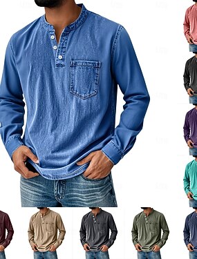 Per uomo Maglietta Maglia Henley Camicia a Maniche Lunghe Manica Lunga Semplice Classico Casual Muscolo Tinto in capo Sbiadito Bottonato Henley Casuale Streetwear Ferie Primavera & Autunno Tutte le