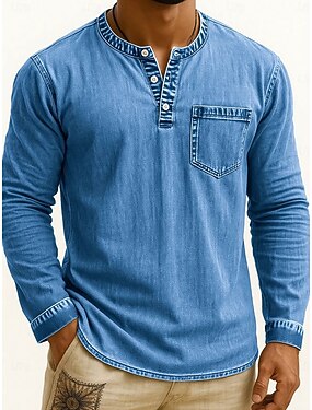 Per uomo Camicia vintage Maglia Henley Maglietta Manica Lunga Tinta unica Semplice Tinta unita Vintage Moda Retrò Sbiadito Bottoni Henley Casuale Quotidiano All'aperto Estate Primavera Tutte le