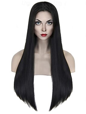 Parrucca di Halloween nera liscia da "vampiro" – capelli sintetici lunghi e lisci per costume da vampiro, cosplay &servizi fotografici