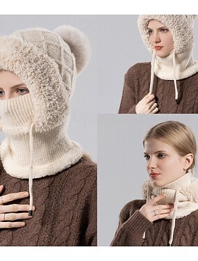 berretto invernale in maglia foderato in pile per donna, berretto con protezione per le orecchie, mascherina integrata e scaldacollo, caldo e accogliente berretto da indossare per il freddo all'aperto