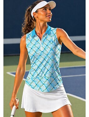 Per donna Geometrico A quadri Top Maglietta sportiva Polo da golf Canotta Senza Maniche Cerniera Floreale UPF50+ Resistente ai Raggi UV Alta elasticità Traspirante Tennis Golf Pickleball Collo