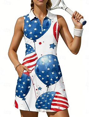 Giornata dell'indipendenza 250° anniversario dell'America Per donna Grafico Bandiera Nazionale Abito sportivo Abito polo da tennis Senza Maniche Zip a un quarto Elastico Traspirante Pallavolo Tennis