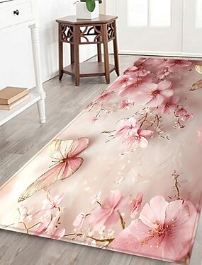 tappeto da corridoio con motivo floreale, tessuto di flanella stampato, antiscivolo, morbido, decorazione per il pavimento della casa, tappeto da ingresso, tappeto da bagno