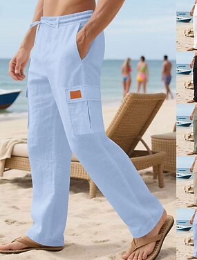 Per uomo Pantaloni di Lino Pantaloni Pantaloni Estivi Pantaloni da Spiaggia Coulisse Elastico in vita Semplice Comodità Traspirante Quotidiano All'aperto Spiaggia Vacanza Moda Nero Bianco