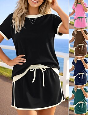 Per donna Normale Tuta Attivo Floreale Manica corta A V Vita alta Da mare Giornaliero Standard Nero Bianco Blu Estate