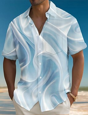 Per uomo Illusione ottica Oceano Onde Camicia Camicia Estiva Camicia con Bottoni Manica Corta Moda Casual Vacanza Ferie Abbigliamento casual alla moda Estate Collo ripiegato Stampa 3D Una tasca