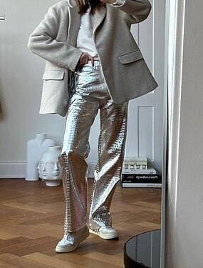 Metallico Brillanti Pantaloni Copertura in Rete Trasparente con Strass Disco Tinta unica Costume Per donna Feste Club Parata dell'Orgoglio Adulti Pantaloni