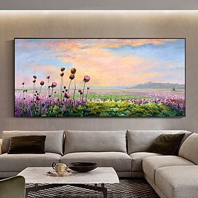 originale pianta e fiore dipinto su tela dipinto a mano dipinto a mano arte della parete telaio allungato pronto da appendere grande astratto viola lavanda paesaggio pittura acrilica decorazione della