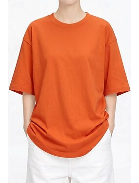 T-Shirt Oversize da Donna in 100% Cotone Tee Top Monocromatica Stilosa Basic Casual Manica Corta Collo Regolare Top Regolari Sport Uscita Giornaliera Nero Bianco Rosa Vino Blu Navy Primavera