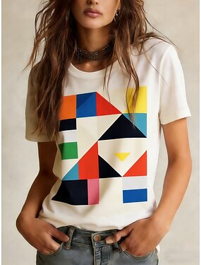 Per donna Maglietta Stampato Grafico Geometrico Elegante Classico Casual Manica Corta Girocollo Top Regolari Quotidiano Sportivo Uscire Bianco Estate Primavera