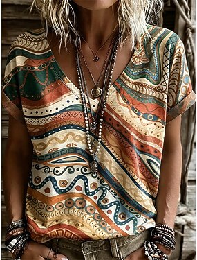 Per donna Maglietta bohémien Maglietta Stampato Floreale Grafico Vintage Etnico Casual Manica Lunga Scollo a V Top Regolari Quotidiano Weekend Abbigliamento da vacanza Arancione Estate Primavera