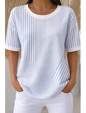Per donna Maglietta Stampato Grafico A righe Vintage Elegante Classico Manica Corta Girocollo Top Regolari Quotidiano Weekend Blu Bianco Estate Primavera