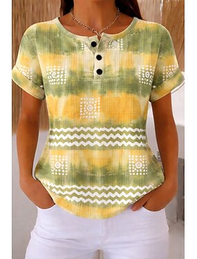 Per donna Camicia Boho Maglietta Grafico Astratto Vintage Moda Etnico Manica Corta Girocollo Top lunghi Quotidiano Uscire Weekend Blu Nero Rosso Viola Arancione Estate Primavera