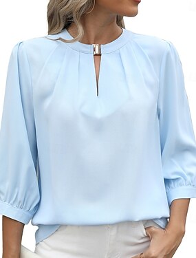 Per donna Camicia Blusa Bottoni Semplice Elegante Manica Lunga Colletto a Camicia Top Regolari Ferie Uscire Bianco Azzurro cielo Rosa Estate Primavera Autunno Inverno