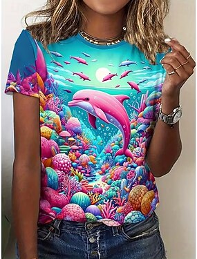 Per donna Maglietta Stampato Grafico Animale Vintage Elegante Classico Manica Corta Girocollo Top Regolari Quotidiano Weekend Blu Estate Primavera