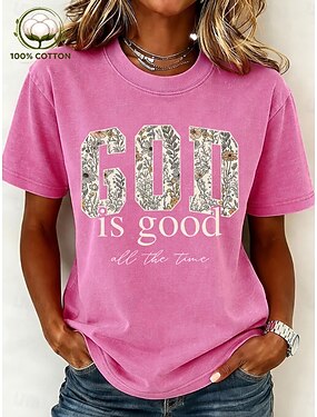 Per donna Maglietta Stampato Lavaggio acido Lavaggio vintage Lettera Elegante Essenziale Classico Manica Corta Girocollo Top Regolari Casuale Quotidiano Blu Nero Rosa Viola Verde Estate