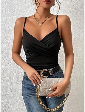 Per donna Maglietta Pieghe Tinta unica Elegante Caldo Senza Maniche Monospalla Top corti Uscire Abbigliamento da vacanza Abiti per la serata romantica Nero Avorio Estate Primavera