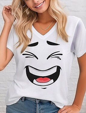 Per donna Maglietta Stampato Grafico Elegante Classico Casual Manica Corta Scollo a V Top Regolari Quotidiano Blu Nero Bianco Rosso Estate Primavera