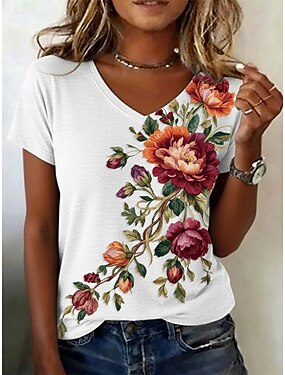 Per donna Maglietta Stampato Rosa Elegante Casual Manica Corta Scollo a V Top Regolari Quotidiano Nero Bianco Rosa Estate