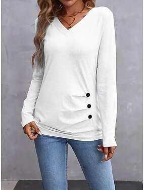 Per donna Blusa Bottoni Tinta unica Elegante Casual Manica Lunga Scollo a V Top Regolari Quotidiano Nero Bianco Vino Arancione Primavera