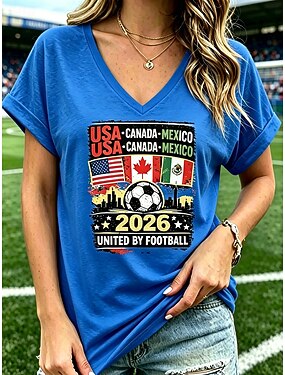 t-shirt da calcio da donna con stampa grafica vintage elegante casual manica corta scollo a V top regolari casual quotidiano weekend blu nero bianco rosso estate primavera
