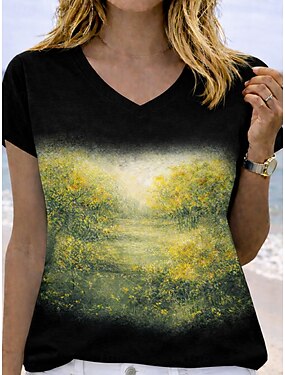 Per donna Maglietta Stampato Floreale Grafico Moda Elegante Classico Manica Corta Girocollo Top lunghi Casuale Quotidiano Weekend Verde con beige Giallo Viola Estate Primavera
