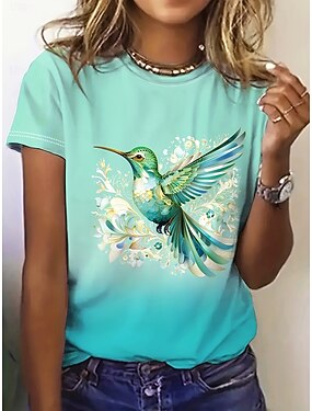 Per donna Maglietta Stampato Ombre Grafico Uccello Bohemien Hawaiano Elegante Manica Corta Girocollo Top Regolari Quotidiano Giallo Rosa Verde Estate Primavera