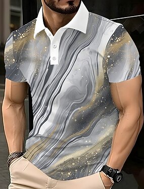Per uomo Geometrico Marmo Polo Manica Corta Magliette polo Camicie con Colletto Casual Athleisure Abbigliamento da Esterno Abbigliamento casual alla moda Bottoni Estate Blu Azzurro cielo Viola