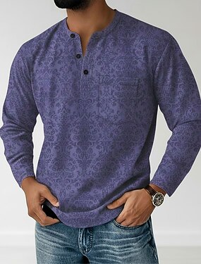 Per uomo Paisley Maglia Henley Maglietta Manica Lunga Retrò Vintage Casual Casuale Primavera Autunno Tutte le stagioni Blu Verde Viola Cachi Henley Maglietta Henley