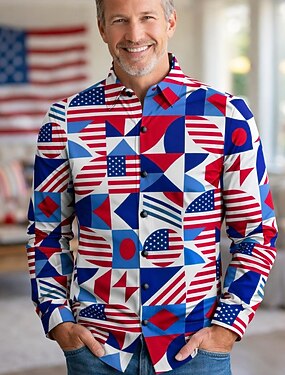 250° anniversario USA Retrò Vintage Anni '70 Camicia Camicia Aloha Lunghe Hippie Geometrico Etnico Costume Per uomo Mascherata 4 Luglio Feste Giorno dell'Indipendenza Adulti Camicia