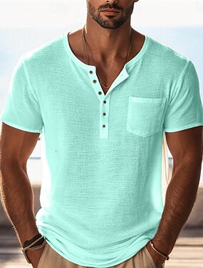 Per uomo Maglietta Maglietta a Maglia Manica Corta Henley Estate Tinta unica Testurizzato Moda Leggero Essenziale Rete Lavorato a maglia Casuale Vacanza Streetwear Nero Viola Verde Maglietta Top per