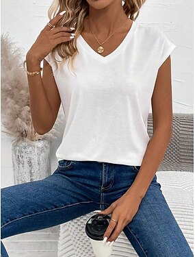 Per donna Maglietta Canotta Stampato Tinta unica Grafico Semplice Elegante Classico Casual Senza Maniche Manica Corta Scollo a V Top Regolari Quotidiano Nero Bianco Rosso Grigio Estate Primavera