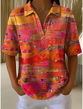 Per donna Top estivi Grafico Geometrico Elegante Vintage Senza Maniche Manica Corta Colletto a Camicia Top Regolari Casuale Quotidiano Giallo Viola Arancione Estate Primavera