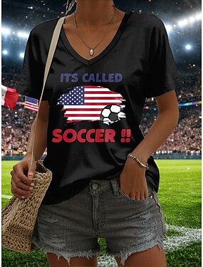 Per donna Maglietta Stampato Grafico Squadra di calcio Elegante Classico Casual Manica Corta Scollo a V Top Regolari Quotidiano Blu Nero Bianco Verde Estate Primavera