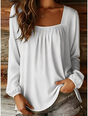 T-Shirt Donna Colore Unito Stile Casual Manica Lunga Collo Quadrato Top Regolari Giornalieri Arricciato Blu Bianco Rosa Blu Cielo Beige Estate Primavera Autunno