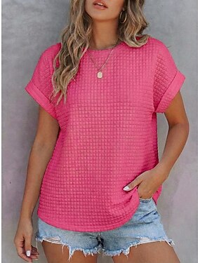 Per donna Maglietta Waffle Maglietta Elegante Manica Corta Manica a pipistrello Girocollo Top lunghi Casuale Abbigliamento da vacanza Bianco Verde Rosso rosa Estate Primavera