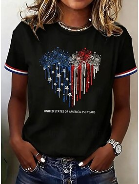 Giorno dell'Indipendenza Americana Per donna Maglietta Stampato Grafico Bandiera Lettera Vintage Elegante Classico Manica Corta Girocollo Top Regolari Quotidiano Blu Nero Bianco Grigio Estate