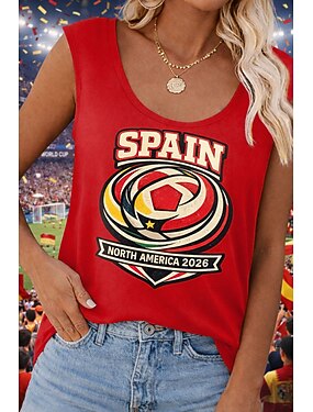 Canotta da Donna World Soccer Match 2026 Top in Maglia Waffle Testurizzata Grafica Squadra di Calcio Vintage Tropicale Elegante Senza Maniche Collo Tondo Regular Top Giornalieri Weekend Blu Nero