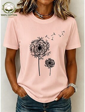 Per donna Maglietta Finto cotone e lino Stampato Grafico Dente di leone Moda Elegante Classico Manica Corta Scollo a V Top Regolari Quotidiano Uscire Weekend Bianco Giallo Blu inchiostro Grigio