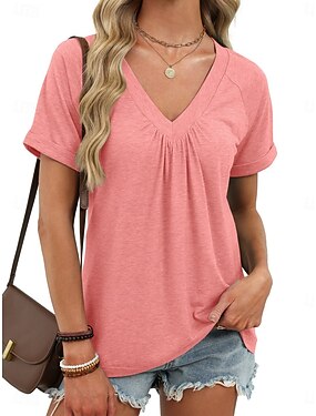 Per donna Maglietta Semplice Moda Elegante Classico Manica Corta Scollo a V Top Regolari Quotidiano Uscire Weekend Nero Bianco Rosa Vino Blu marino Estate Primavera
