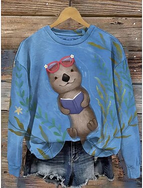 Per donna Felpe Stampato Grafico Casual Manica Lunga Girocollo Top Regolari Casuale Streetwear Abbigliamento Quotidiano Blu Marrone Verde Azzurro Primavera Autunno Inverno