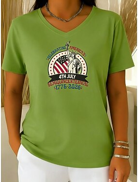 Giorno dell'Indipendenza Americana Per donna Maglietta Stampato Grafico Elegante Classico Casual Manica Corta Scollo a V Top Regolari Quotidiano Uscire Weekend Blu Nero Bianco Rosso Verde Estate