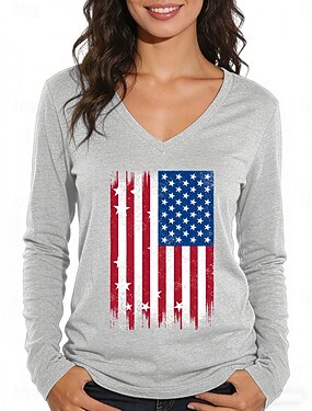 Giorno dell'Indipendenza Americana Per donna Maglietta Stampato Grafico Bandiera Bandiera Americana Elegante Casual Manica Lunga Girocollo Top Regolari Quotidiano Blu Estate Primavera