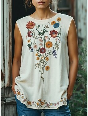 Giorno dell'Indipendenza Americana Per donna Maglietta bohémien Maglietta Maglietta senza maniche Stampato Floreale Grafico Bohemien Vintage Senza Maniche Girocollo Top Regolari Quotidiano Weekend