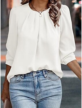 Per donna Camicia casual Camicia con Bottoni Blusa Arricciato Asta Tinta unica Elegante Quotidiano Manica Lunga Collo ripiegato Top Regolari All'aperto Ferie Bianco Primavera Autunno